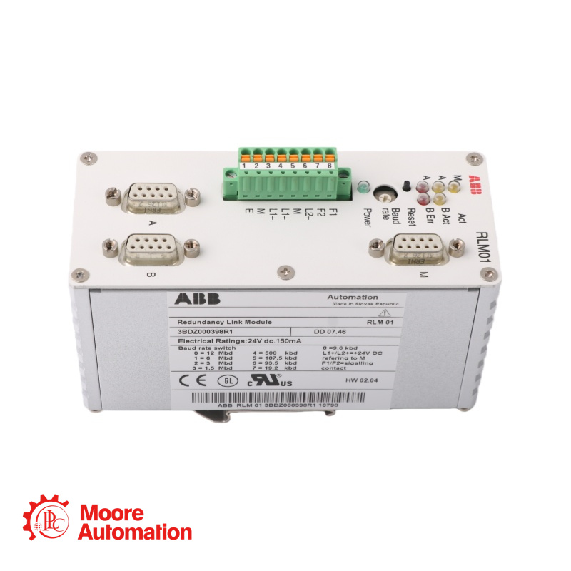 A: 3BDZ000398R1 RLM01 PROFIBUS Redundancy Link Module is for PROFIBUS line redundancy Converts a non-redundant PROFIBUS line to two redundant RS485 lines or vice versa.