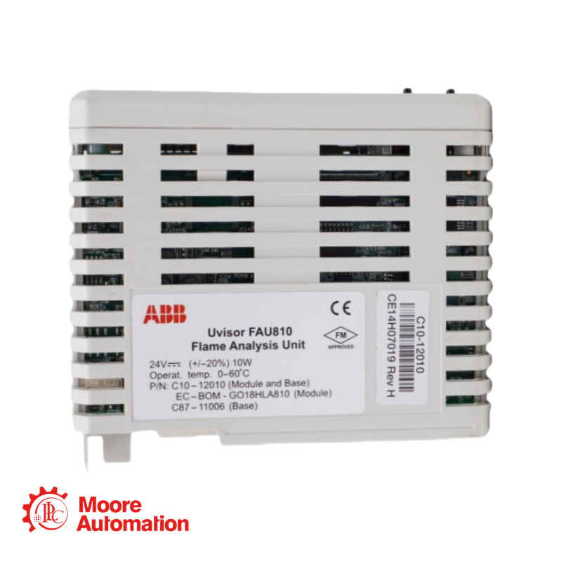 The ABB FAU810 C10-12010 is a Flame Analysis Unit designed for continuous monitoring and safety supervision of combustion flames in industrial burners, boilers, and process heaters.