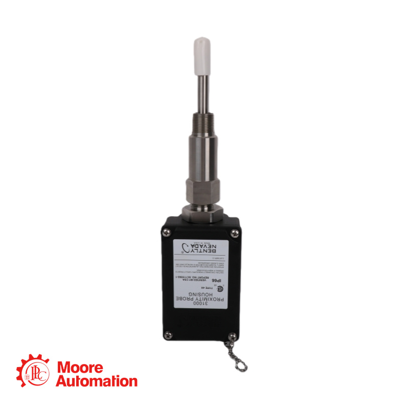 The 32000-29-10-00-234-03-02 Proximity Probe Housing Assembly are recommended when mounting proximity probes through the machine case and are typically used for radially mounted transducers, whether vibration or Keyphasor measurements. The 32000-29-10-00-234-03-02 Proximity Probe Housing Assembly with a 3300 XL 8 mm probe with connector protector, 1.0 m probe cable, No standoff adapter, 234 mm probe penetration, Two plugs + M20 fitting + Cable Grip fittings, and 3/4-14 NPT mounting thread.