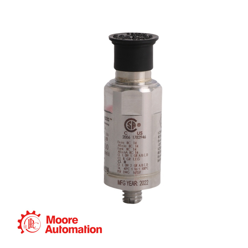 เซ็นเซอร์วัดความเร็วเพียโซของ Bently Nevada Velomitor ได้รับการออกแบบมาเพื่อวัดการสั่นสะเทือนของตัวเรือน ปลอกหุ้ม หรือโครงสร้างตลับลูกปืนแบบสัมบูรณ์ (เทียบกับพื้นที่ว่าง) 330500 เป็นเครื่องวัดความเร่งเพียโซอิเล็กทริกแบบพิเศษที่ผสานรวมระบบอิเล็กทรอนิกส์แบบฝังไว้ในดีไซน์โซลิดสเตต เนื่องจาก 330500 ผสานรวมระบบอิเล็กทรอนิกส์แบบโซลิดสเตตและไม่มีชิ้นส่วนที่เคลื่อนไหว จึงไม่เกิดการเสื่อมสภาพและการสึกหรอทางกล และสามารถติดตั้งในแนวตั้ง แนวนอน หรือในมุมการวางแนวอื่นๆ ได้ อะแดปเตอร์เกลียวยึด: 06 5/8 – 18 เอ็นเอฟ การอนุมัติของหน่วยงาน: 02 ATEX (ยุโรป) |
