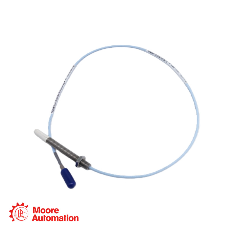 The 3300 NSv Proximity Probe (model 330903) is an unarmored M8x1 metric probe designed for precision measurements in confined spaces. With a 190mm case length, 170mm unthreaded section, and 0.5-meter FEP-insulated cable, this probe is ideal for applications requiring minimal side clearance in centrifugal compressors and other rotating machinery.