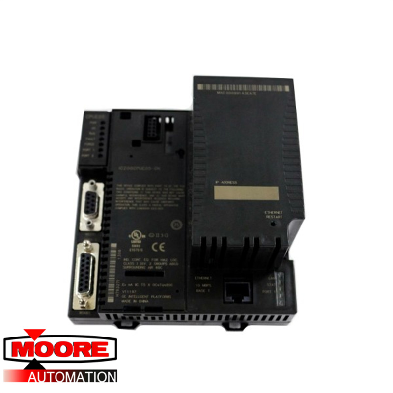 IC200CPUE05 แบ่งปันคุณสมบัติพื้นฐานของ VersaMax*PLC CPU อื่นๆ ให้ฟังก์ชัน PLC ที่ทรงพลังในระบบขนาดเล็กและอเนกประสงค์ CPUE05 สามารถทำหน้าที่เป็นตัวควบคุมระบบสำหรับโมดูลสูงสุด 64 โมดูลที่มีจุด I/O สูงสุด 2048 จุด พอร์ตอนุกรมสองพอร์ตให้อินเตอร์เฟส RS-232 และ RS-485 สำหรับการสื่อสารแบบอนุกรม CPUE05 ยังมีอินเทอร์เฟซอีเธอร์เน็ตในตัว พอร์ตอนุกรม RS-232 สามารถกำหนดค่าสำหรับการดำเนินการจัดการ Local Station เพื่อให้เข้าถึงข้อมูลการวินิจฉัยเกี่ยวกับอินเทอร์เฟซอีเธอร์เน็ตได้ CPUE05 มีหน่วยความจำที่กำหนดค่าได้ 128KB