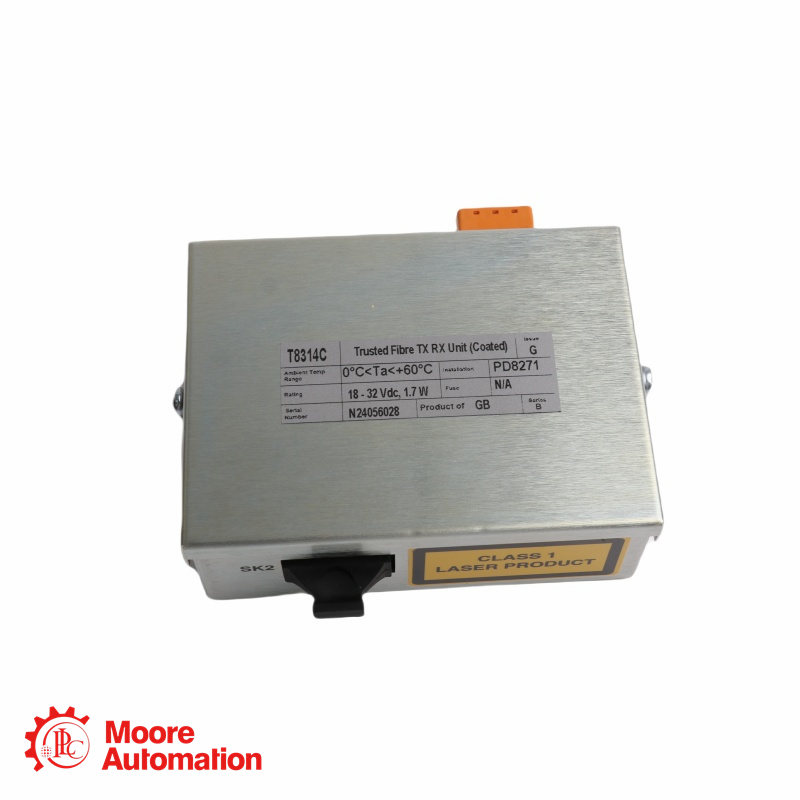 หน่วย Trusted Fibre TX/RX T8314 ได้รับการออกแบบให้ติดตั้งบนราง DIN ในบริเวณด้านหลังของตู้/ช่องที่มี Trusted Controller Chassis T8100 หน่วยนี้จัดให้มีอินเทอร์เฟซการเชื่อมต่อการสื่อสารระหว่าง Trusted Controller Chassis และ Expander Chassis ระยะไกล