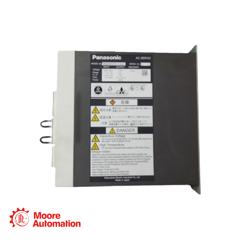 The Panasonic MQDB045D1A04 is a Servo Driver designed for precise motion control in industrial applications. This driver works with Panasonic's MINAS A5 series servo motors to provide high-performance control of speed, torque, and position. It features advanced control algorithms, vibration suppression, and auto-tuning capabilities, making it suitable for applications like CNC machinery, robotics, packaging equipment, and automated assembly lines.