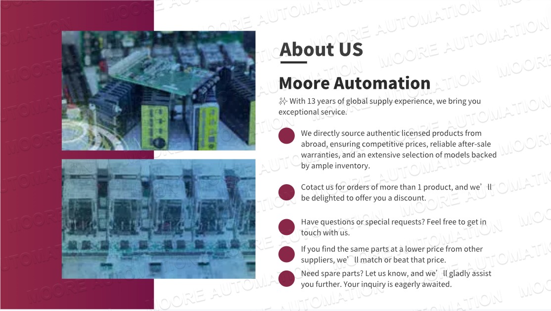 ซัพพลายเออร์ชิ้นส่วนระบบอัตโนมัติระดับโลก: เราเชี่ยวชาญในด้านการจัดหาและจัดหาชิ้นส่วนระบบอัตโนมัติใหม่ ล้าสมัย และได้รับการปรับปรุงใหม่จากแบรนด์ชั้นนำทั่วโลก |